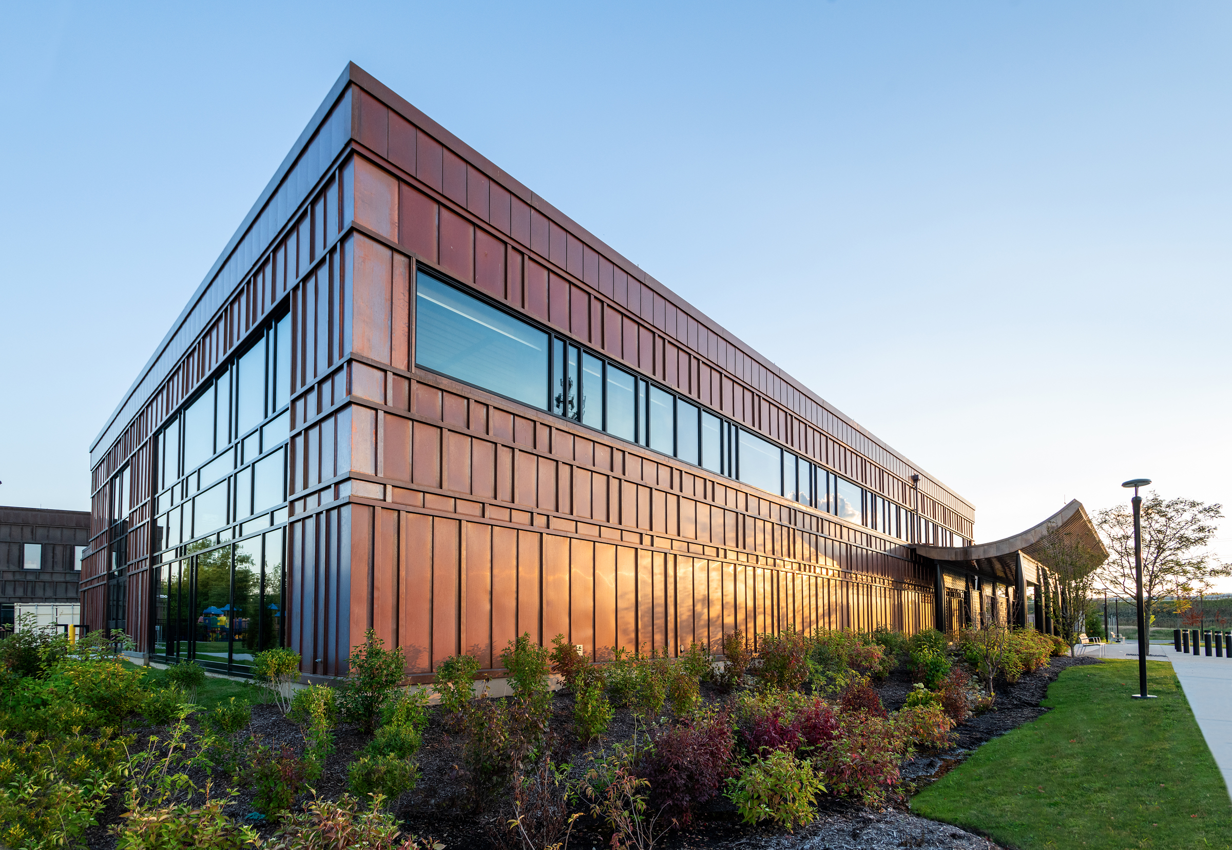 Fabricators Metal Tech Global provided custom copper cladding and decorative metal to match the original system, ensuring transitions between the original and new structures will be seamless after the new copper patinates. Wall cladding installer Mohawk Construction and Supply created a precision pre-layout to avoid mis-fabrications. During installation, the Mohawk team also took significant care to avoid denting, creasing, or scratching the copper, attention to detail that resulted in a quality copper façade that was free of blemishes.